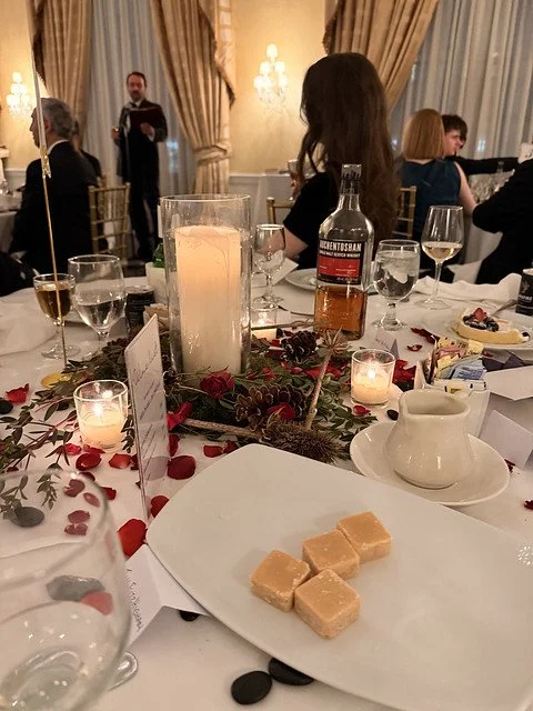 The dress code was black-tie Highlander (thank GOD everyone understood the assignment—because wow, do I love a kilt), but the vibe wasn’t stiff or museum-like. Yes, Robert Burns is the reason the night exists, but he wasn’t treated like a sacred statue. The feeling was: he was alive, he was messy, he was brilliant—and tonight, so are we. The energy matched. Warm. Loud. Slightly chaotic, in the best way.