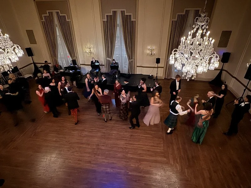 Scottish reeling is built for the confused. You’re dropped into a set, someone calls the steps, and suddenly you’re flying through patterns you’ve never done before. I was dizzy and thrilled in equal measure—learning on the fly, following whoever looked confident, and realizing two seconds too late that turn means TURN. (I also learned that with enough whiskey, a properly sprung ballroom floor, and last-minute Amazon dance shoes, I spin beautifully.)