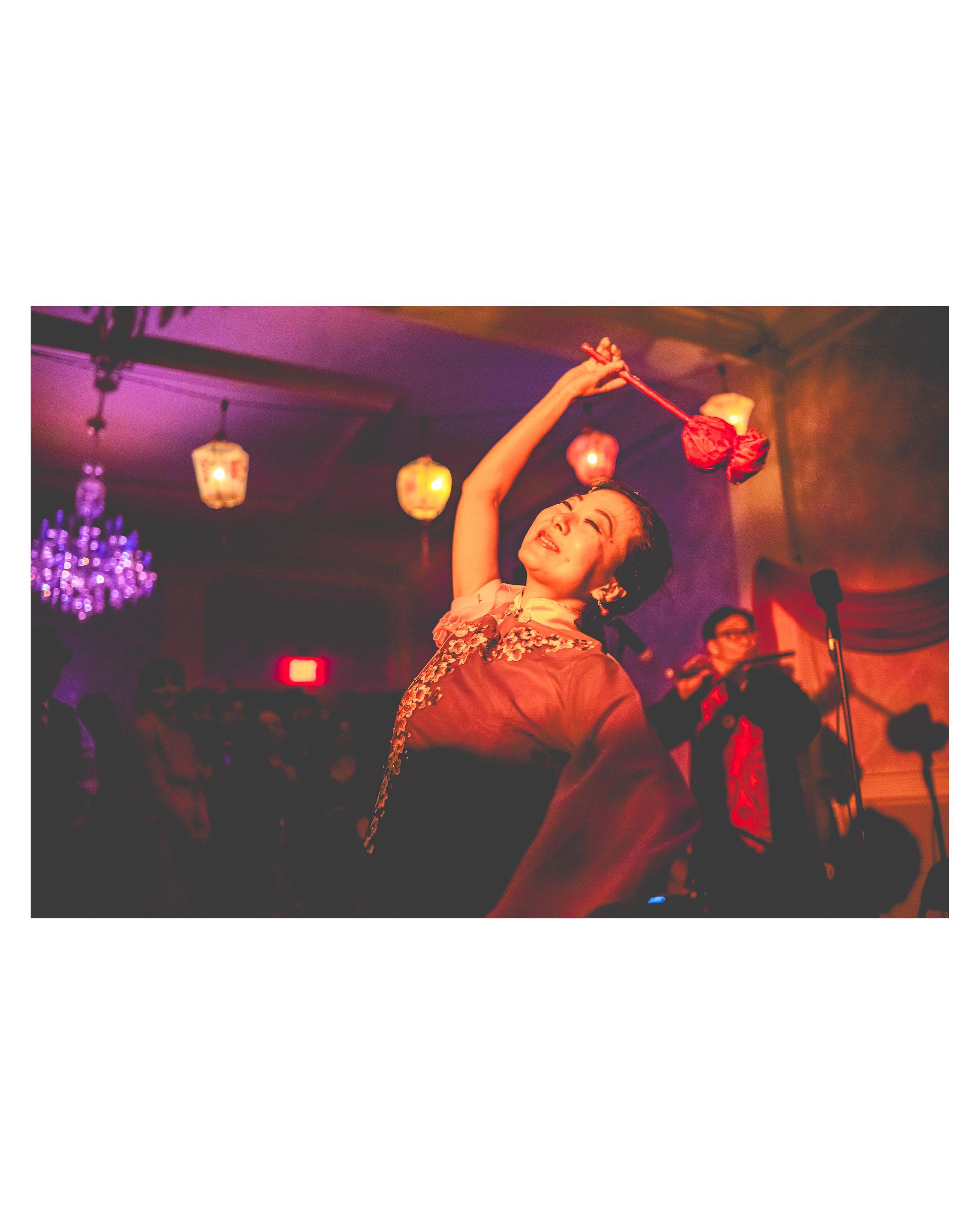 Then came Zhou Yi on the pipa, a stunning pear-shaped string instrument that sent chills through the room, joined by Miao Yimin on Chinese flute and frame drum. Both performers are part of the Ba Ban Chinese Music Society and represented it beautifully. Midway through their set, Ling Tang joined them for a classical Chinese dance that was both graceful and playfully expressive.