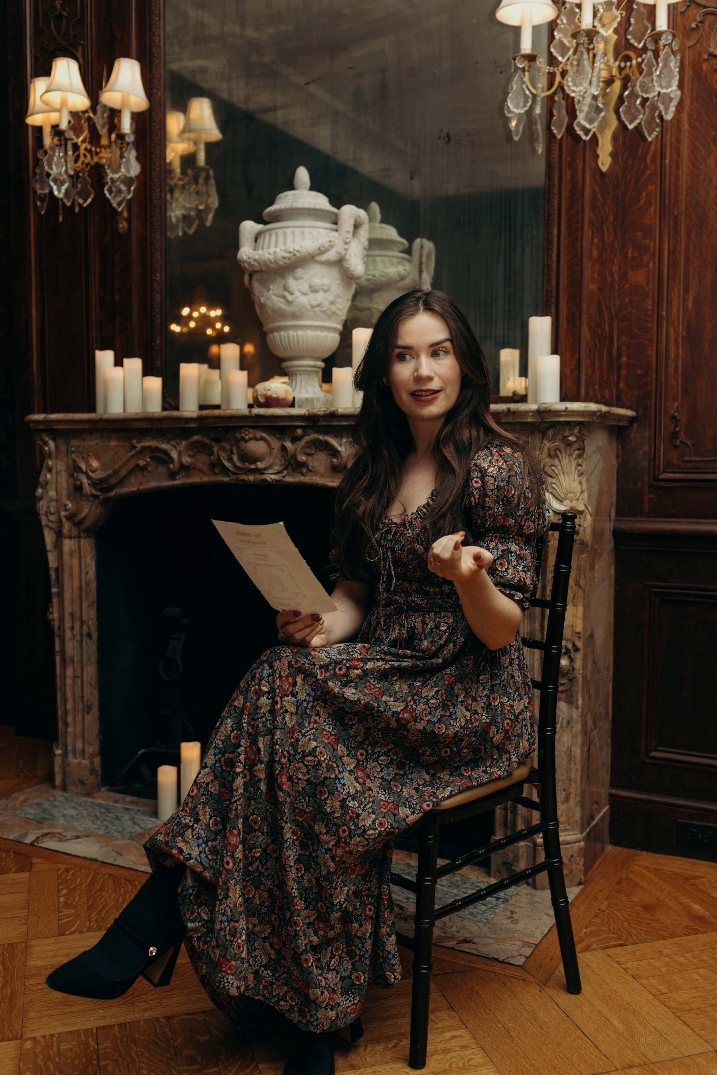 We’re at the Irish American Historical Society, attending the second event for Hearth Ireland. Northern Irish actress and historian Susan Davey explains that Hearth “seeks to create spaces where a wide range of voices can be heard and stories shared.” Tonight, we will share ghost stories from Irish myth to more modern nightmares, bridging the old world and the new.