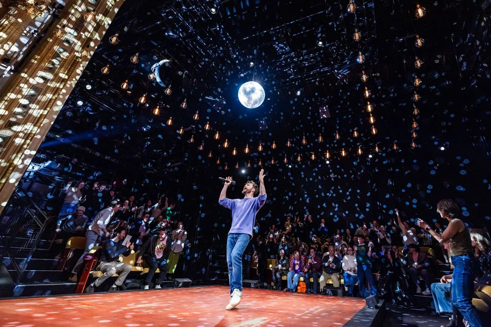 At one point, a disco ball enters and descends on the left left like a stage-shy custodian who never expected to be here. Music plays. We’re on our feet. We’re dancing! People are kissing! Hugging! For a brief, euphoric moment, it feels like Daniel Radcliffe has personally solved all of our problems and told our bosses off on our behalf!